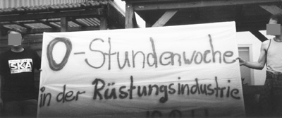 Unter dem Motto „Deutschland abschwören – Europa einheizen! Radikal gegen Militarisierung und Krieg!“ hatten mehr als 20 Gruppen und Organisationen zur Demonstration gegen das Gelöbnis der Bundeswehr aufgerufen. Die Polizei vor Ort wurde nervös, da sie „von oben“ mehrfach die Order erhalten hatte, dafür zu sorgen, dass die Kundgebung leiser werden müsse. Sie drohte den Einsatz von Wasserwerfern und die Erstürmung des Lautsprecherwagens an. Die DemonstrantInnen ließen sich nicht einschüchtern, trillerten weiter, skandierten Parolen und tanzten vor den Polizeiketten.